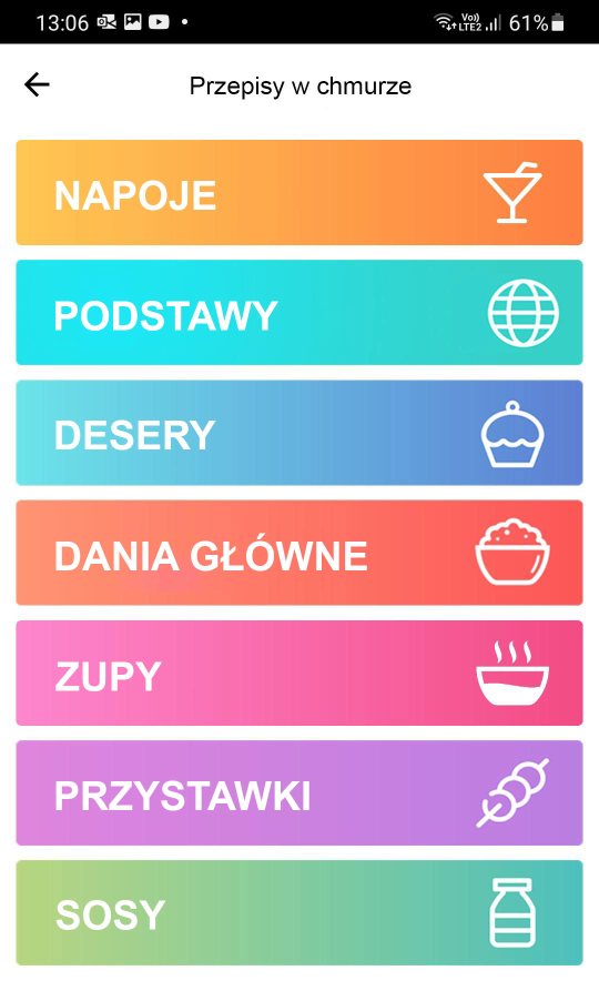 Wejdź w zakładkę „Przepisy”. Pokaże się lista kategorii przepisów.