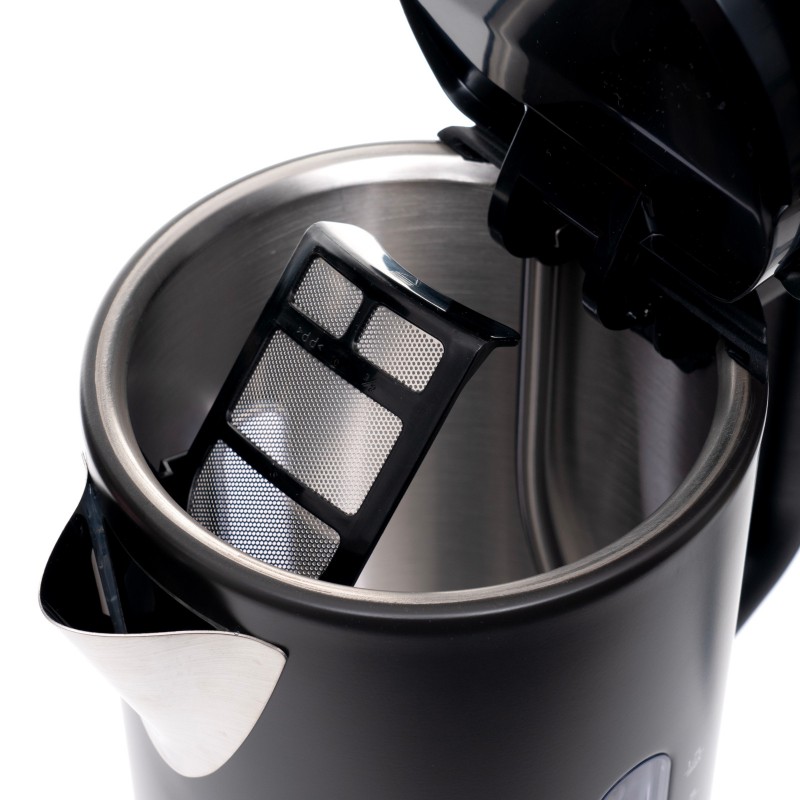 Dzbanek posiada okienko, dzięki któremu kontrolujesz poziom wody, a towarzysząca mu dwuwartościowa skala pozwala na precyzyjne określenie objętości: z uwagi na litraż oraz ilość filiżanek. Czajnik elektryczny osiąga maksymalnie 3000 W, gwarantując szybkie nagrzewanie. Czajnik wykonany jest ze stali nierdzewnej, dzięki czemu dłużej utrzymuje ciepło i możemy bez ponownego gotowania wykorzystać wodę do zalewania trunków, które nie wymagają wrzątku.