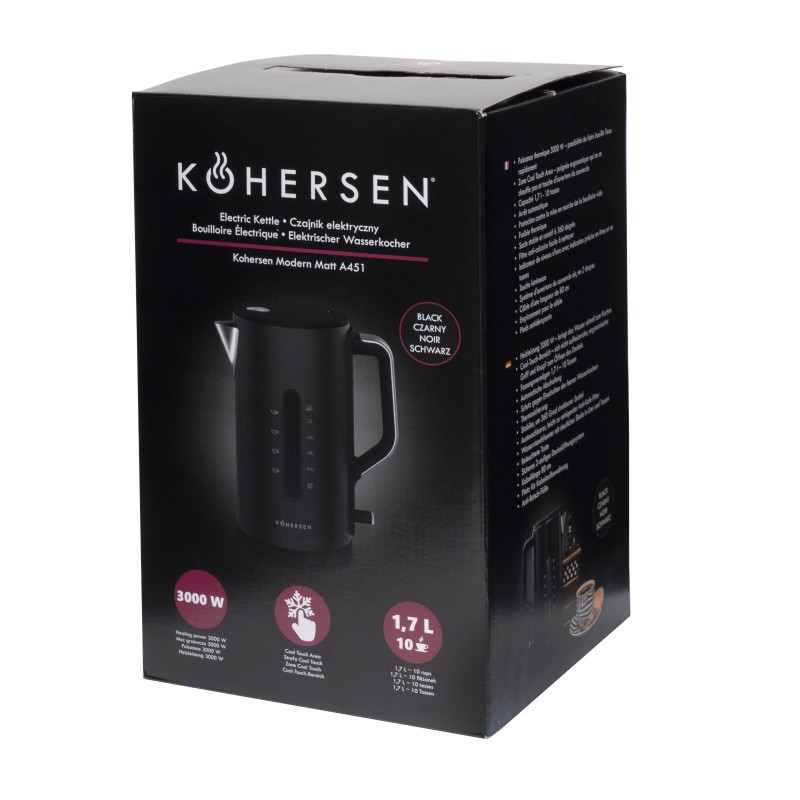 Czajnik elektryczny Kohersen Modern Matt A451, 3000 W, czarny