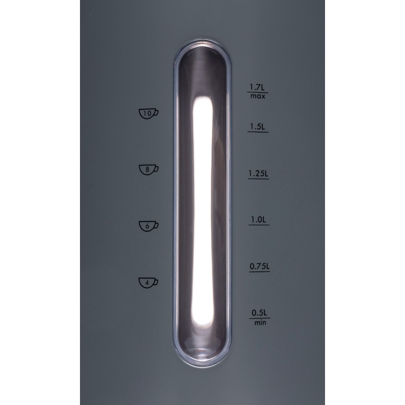 Dzbanek posiada okienko, dzięki któremu kontrolujesz poziom wody, a towarzysząca mu dwuwartościowa skala pozwala na precyzyjne określenie objętości: z uwagi na litraż oraz ilość filiżanek. Czajnik elektryczny osiąga maksymalnie 3000 W, gwarantując szybkie nagrzewanie. Czajnik wykonany jest ze stali nierdzewnej, dzięki czemu dłużej utrzymuje ciepło i możemy bez ponownego gotowania wykorzystać wodę do zalewania trunków, które nie wymagają wrzątku.