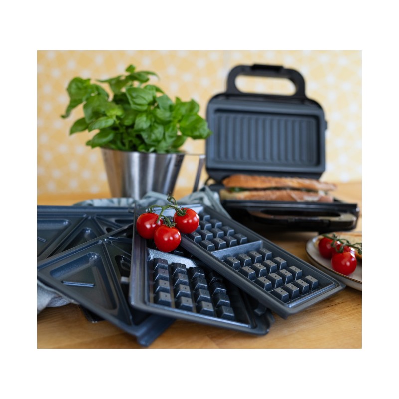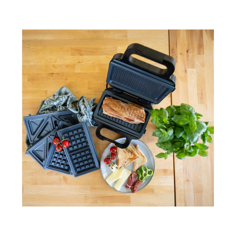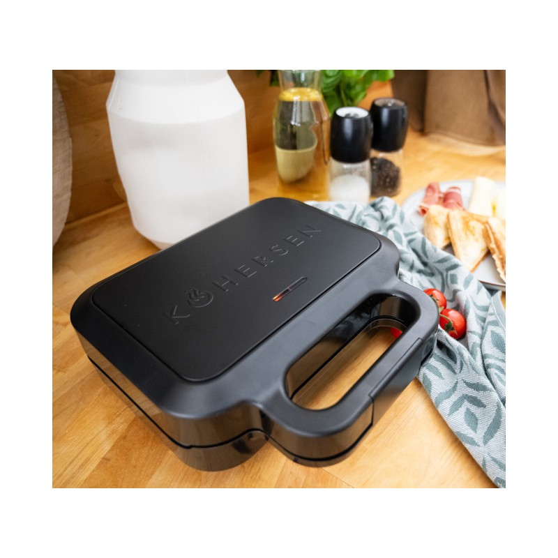 Poznaj urządzenie, które zamieni codzienne przygotowywanie posiłków w czystą przyjemność. Opiekacz 3w1 Kohersen® Black Matt NX Ceramic Compact to idealne rozwiązanie dla osób, które chcą mieć w kuchni sprzęt wielofunkcyjny, stylowy i bezpieczny. Dzięki trzem rodzajom wymiennych płyt z innowacyjną powłoką ceramiczną NX CERAMIC w kilka minut przygotujesz pyszne kanapki, puszyste gofry albo złociste panini.