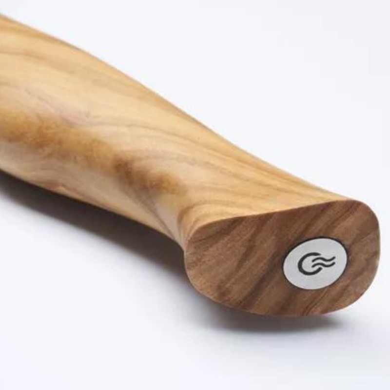 Ręcznie polerowana, elegancka rękojeść z włoskiego drewna oliwnego została odpowiednio wyprofilowana, aby zapewnić komfort użytkowania. Jest ergonomiczna i nie ślizga się. Pozostaje ciepła i gładka w dotyku.
