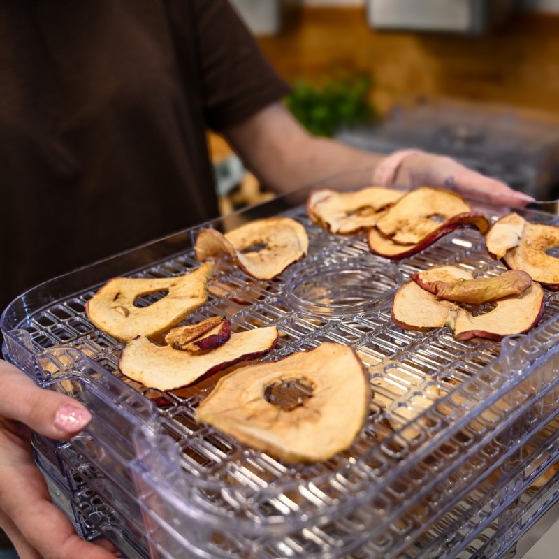 Dzięki kompaktowej obudowie i nowoczesnemu designowi, suszarka idealnie sprawdzi się w każdej kuchni. Pracuje cicho, równomiernie i bez konieczności ciągłego pilnowania. Susz żywność sezonową, przygotowuj zdrowe przekąski, chipsy z warzyw, domowe herbaty z suszonych owoców czy przyprawy z własnego ogrodu – przez cały rok!