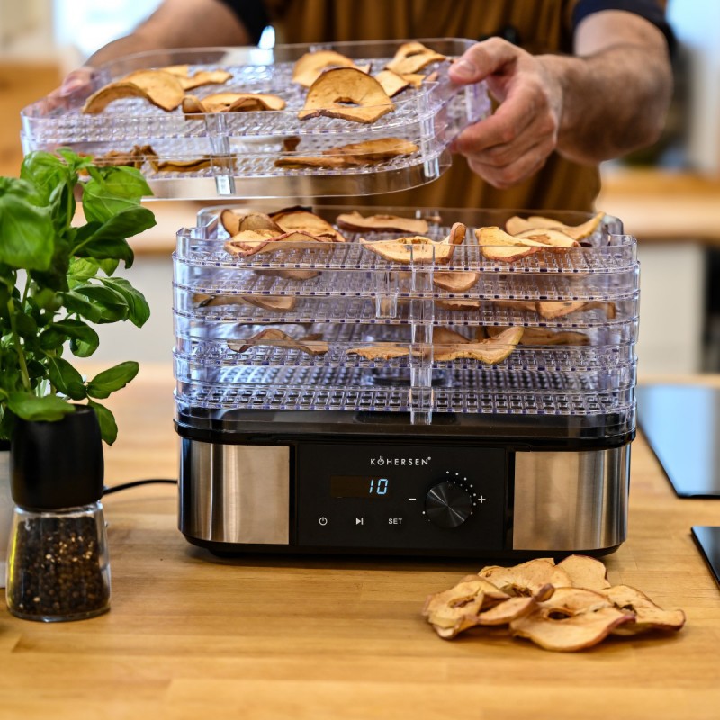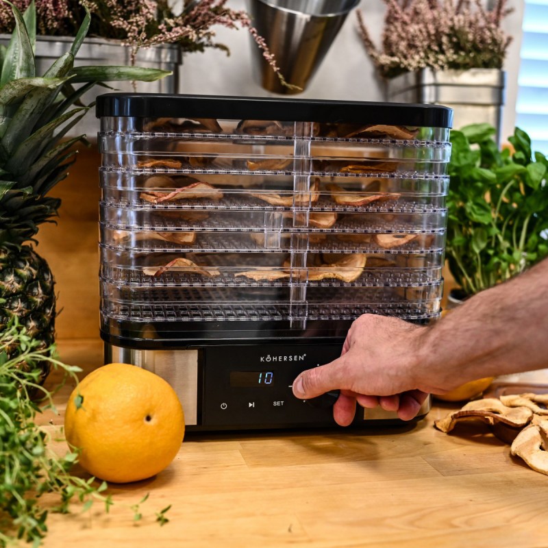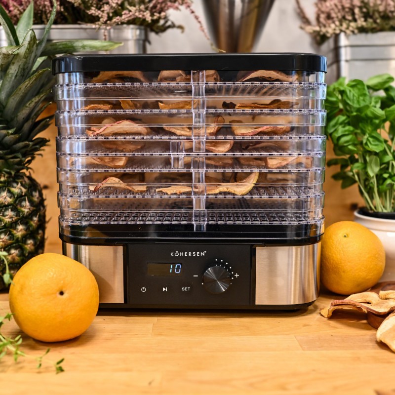 Odkryj wszechstronną suszarkę Kohersen Stainless Steel Max, która umożliwia łatwe i zdrowe przygotowywanie domowych przetworów z grzybów, owoców, warzyw, ziół, a nawet mięsa. Nowoczesny design, timer do 48 h i precyzyjna regulacja temperatury sprawią, że stanie się niezastąpionym pomocnikiem w Twojej kuchni!