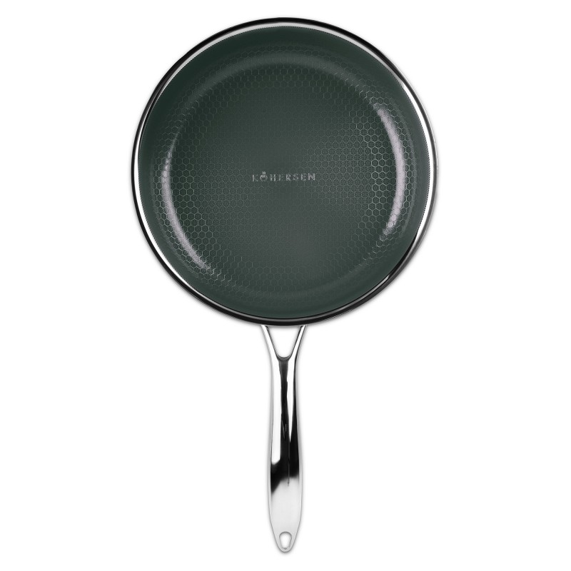 Garnki i patelnie Kohersen® to nowa jakość gotowania, a także wielki krok w stronę zdrowego odżywiania. Przygotowanie potraw jest dużo szybsze, dzięki hybrydowej budowie korpusu naczyń, zwłaszcza jej aluminiowemu komponentowi. Ma to ogromne znaczenie, szczególnie podczas smażenia. „Skórka” zamyka się szybciej, zatrzymując soki i nie przepuszczając tłuszczu w głąb smażonej potrawy. Im szybciej smażymy, tym mniej wytwarza się niekorzystnych dla zdrowia związków, takich jak nadtlenki czy izomery trans. Dodatkowo, dzięki powłoce zapobiegającej przywieraniu przyrządzanie posiłków odbywa się przy użyciu niewielkiej ilości tłuszczu. Doświadczeni kucharze mogą również docenić zalety smażenia beztłuszczowego na patelniach Kohersen®. Potrawy pozostają smaczne, a jednocześnie zdrowe i dietetyczne – ograniczasz kalorie oraz powstawanie szkodliwych substancji.