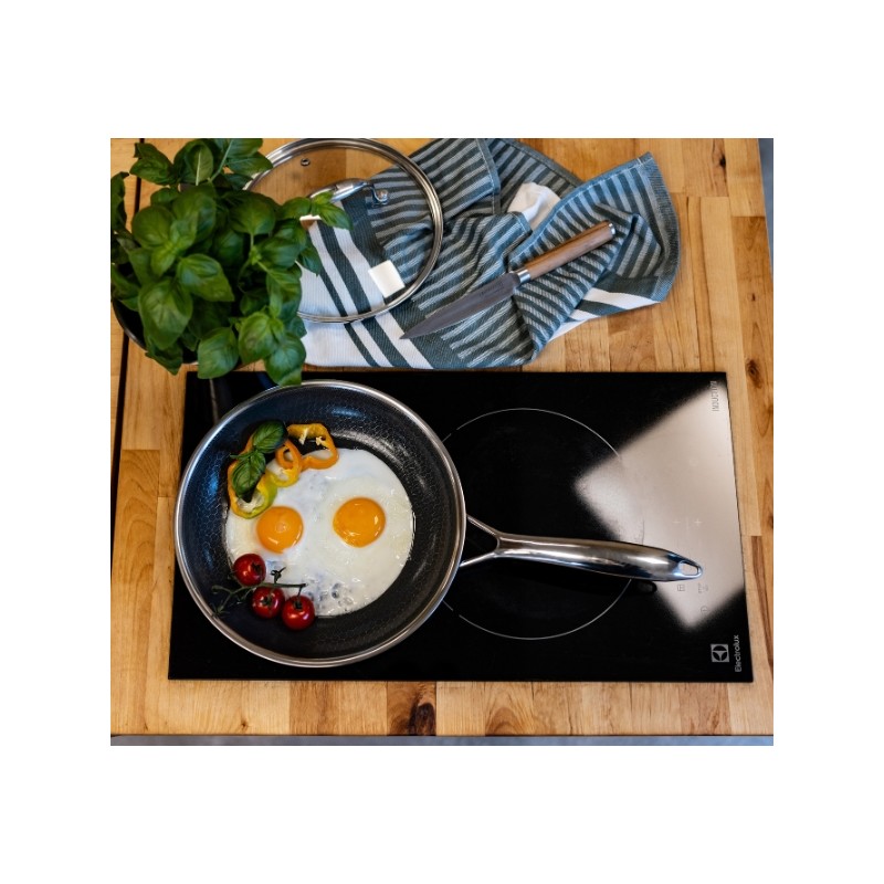 *Badania zostały przeprowadzone przez Laboratorium Badawcze TÜV Rheinland Polska nr 26634888/2022). Przetestowano 5 różnych patelni: w tym o korpusie ze stali, aluminium oraz o budowie hybrydowej (wielowarstwowej), z różnymi powłokami: ceramiczną, emaliowaną oraz PTFE, mierząc punktowo wzrost temperatury do momentu osiągnięcia 200°C.