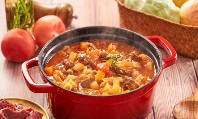 - 250 g mięsa wołowego, pokrojonego w kostkę