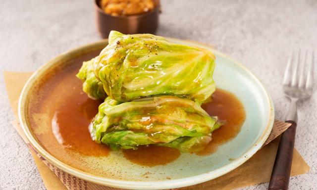 - Nadzienie umieść w każdym ugotowanym liściu kapusty, a następnie zawiń ciasno i umieść w zestawie do gotowania na parze.