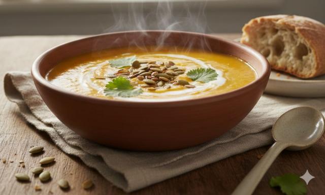 Aksamitny krem o delikatnie słodkim smaku, przełamanym nutą imbiru i czosnku. Idealny na jesienny obiad lub kolację, gdy masz ochotę na coś prostego, ale wyrazistego.