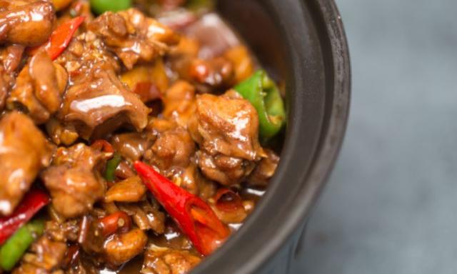 - W woku rozgrzej olej i podsmaż kurczaka do zarumienienia.