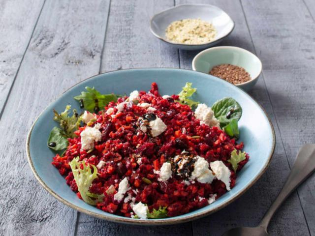 - Na wierzchu serwuj sałatkę z buraków, a następnie udekoruj fetą lub serem pleśniowym. Skrop powstałym sosem tuż przed podaniem.