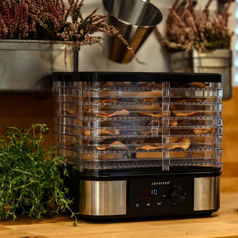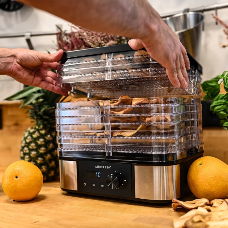 Odkryj wszechstronną suszarkę Kohersen Stainless Steel Max, która umożliwia łatwe i zdrowe przygotowywanie domowych przetworów z grzybów, owoców, warzyw, ziół, a nawet mięsa. Nowoczesny design, timer do 48 h i precyzyjna regulacja temperatury sprawią, że stanie się niezastąpionym pomocnikiem w Twojej kuchni!