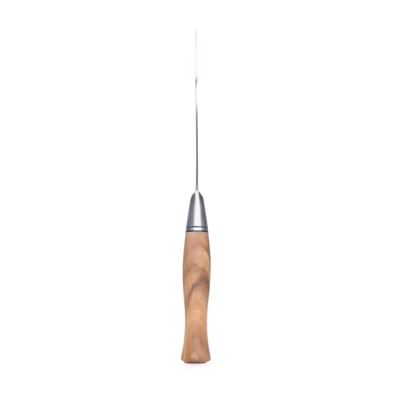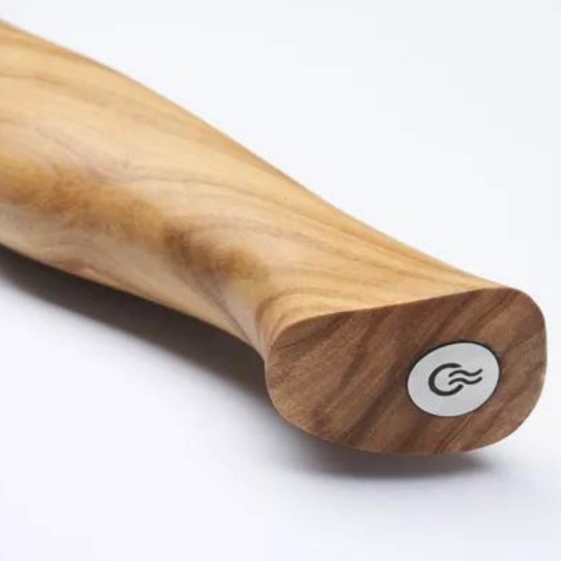 Ręcznie polerowana, elegancka rękojeść z włoskiego drewna oliwnego została odpowiednio wyprofilowana, aby zapewnić komfort użytkowania. Jest ergonomiczna i nie ślizga się. Pozostaje ciepła i gładka w dotyku.